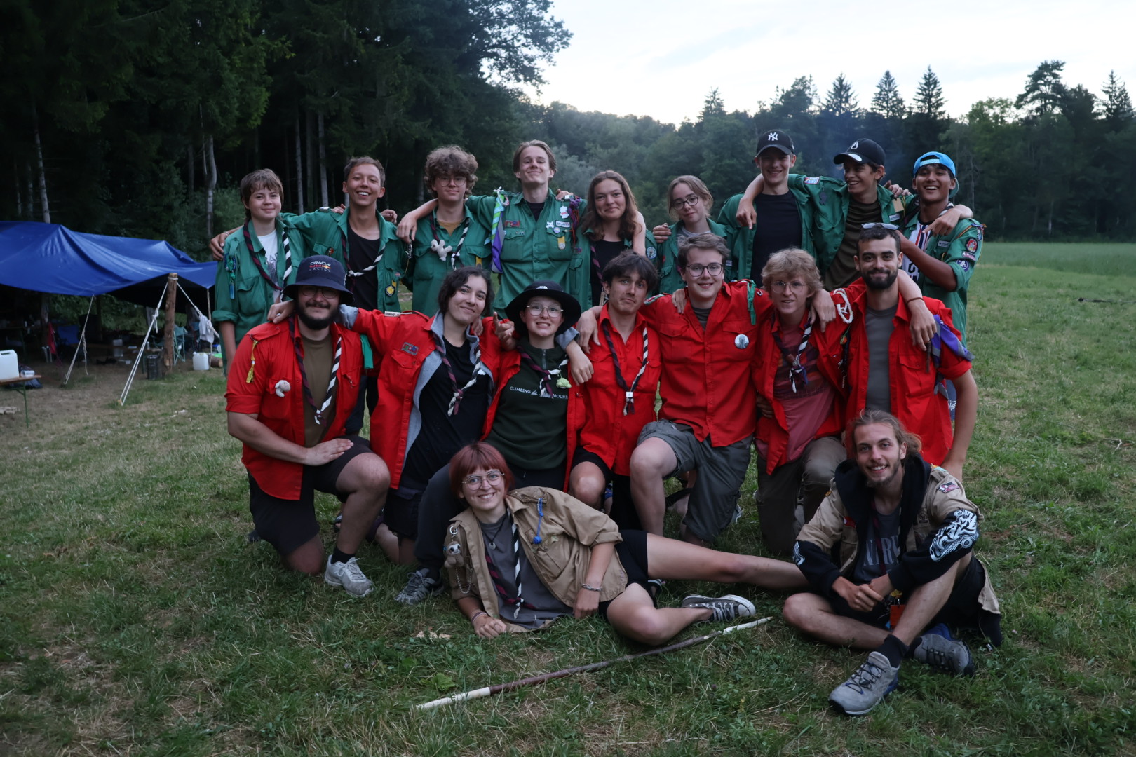 A chaque groupe ses couleurs ! En effet, le Mouvement scout est une très grande famille et chaque groupe qui le compose est reconnaissable et identifiable grâce aux couleurs qu’il aborde à son foulard ou/et sur son étendard. Le foulard scout peut être uni, bicolore, ou même tricolore, comme c’est notre cas ! Il fait partie intégrante de l’uniforme , (pratiquement) commun à tous les scouts du monde. Pour la petite histoire, lorsque Lord Baden-Powell entrepris de créer le scoutisme, il y ajouta le foulard comme rappel des aventuriers de l’Ouest américain ! Au-delà du symbolisme, le foulard scout possède de nombreuses utilités pratiques: il signale l’appartenance à un groupe, sert à se protéger la tête des coups de chaleurs, à bander des blessures, ou encore à servir de cerceau pour les parties de scoutball ! Bref, il est aussi utile qu’un couteau suisse (qu’un scout veille à avoir toujours dans sa poche).